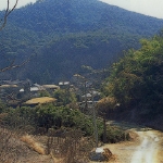 川沿いには農地が広がり、遥か背後の小山へと続いていっている。その農地の先、小山の麓は集落になっている事が多い。ハンの木やコナラの木に囲まれた小規模の村から、コンクリートのビル混じりの少し大きな町まで様々である。