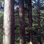 “日田の底霧”とは、秋・冬の地表を覆うこの地域独特の霧の景観をいう。昼夜の寒暖の差が激しいことや、多湿、多雨の気候が日田の美林をつくっている。平均湿度75%、年間132日が深霧の中にあるのだ。日田を代表する森林地域、南部の上、中、前の3つの津江村の降雨量は、2500mmを超える。そうした湿度の高い気候の中で日田杉(南部のものは津江杉ともいう)が育林されている。日田林業を飛躍的に発展させた要因に、そうした気候条件と山間を編み目のように流れる無数の小さな川、それを集めて筑後川に注ぐ、川原川、津江川、大山川、玖珠川、三隅川などの存在がある。川上地域で伐採された木材は、これらの川や陸路を利用して筑後川へと集められ、筑後川を筏で下り、下流の家具製造で知られる福岡県の大川市まで4日かけて運んだという。昭和38年に日田市と福岡県の境にできた夜明ダムの完成によって、筑後川筏流し300年の歴史が終わったのだ。その後は、鉄道や車などの陸路での木材輸送の時代に入る。その歴史が示すように、日田地方の植林の歴史は古い。一説によると、約500年前(1490年頃)に中津江村の宮園神社境内に杉の直挿しを行ったのが始まりとある。本格的な造林は、250年くらい前の江戸時代からである。それ以来、日田は各地から良木の品種を選別し、杉の挿し木植えを行っている。ヤブクグリ杉、ウラセバル杉、アオ杉、イシ杉など、日田地域に適合する杉苗が次々に登場する。1ha当たり3000本前後の植栽を基準とするが、1000本以下の場合もあり、基本的には疎植である。
