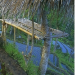棚田に小さな小屋が見えた。丸太の柱を立て、屋根には椰子の葉を載せた粗末なものである。地上1m程の所に竹簀子の床を取り付けてる。水田作業に疲れた時の休息の場にでも利用するのだろうか、それとも稲の生育を見守る場なのか、よく見ると棚田のあっちこっちに築かれていた。バリ島は住民の90%もが農業で生計を立てていると言う。その熱心な農業への想いがこの棚田から伝わってくる。