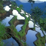 まだ早苗もあれば、緑に萌える棚田もある。細々と重なりあいながら、下から上へと斜面全体に続くその姿は、まるで月の光を浴びて輝く巨大な魚の鱗のようにも見える。棚田は日本にもまだ沢山残されている。がしかしこれほど手入れの行き届いた棚田を見た事がない。