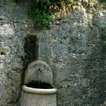 老人指差す洗濯場は3本の太い石の柱で支えられていた。間口5~6M程あろうか、3方を石積みの壁で囲みドッシリとした造りをしている。水を噴く奇妙な顔の石造も、アートを好むコートダジュールの人達ならではのユーモアなのか、この洗濯場と対になって村の楽しいコミュニティ水場となっている。